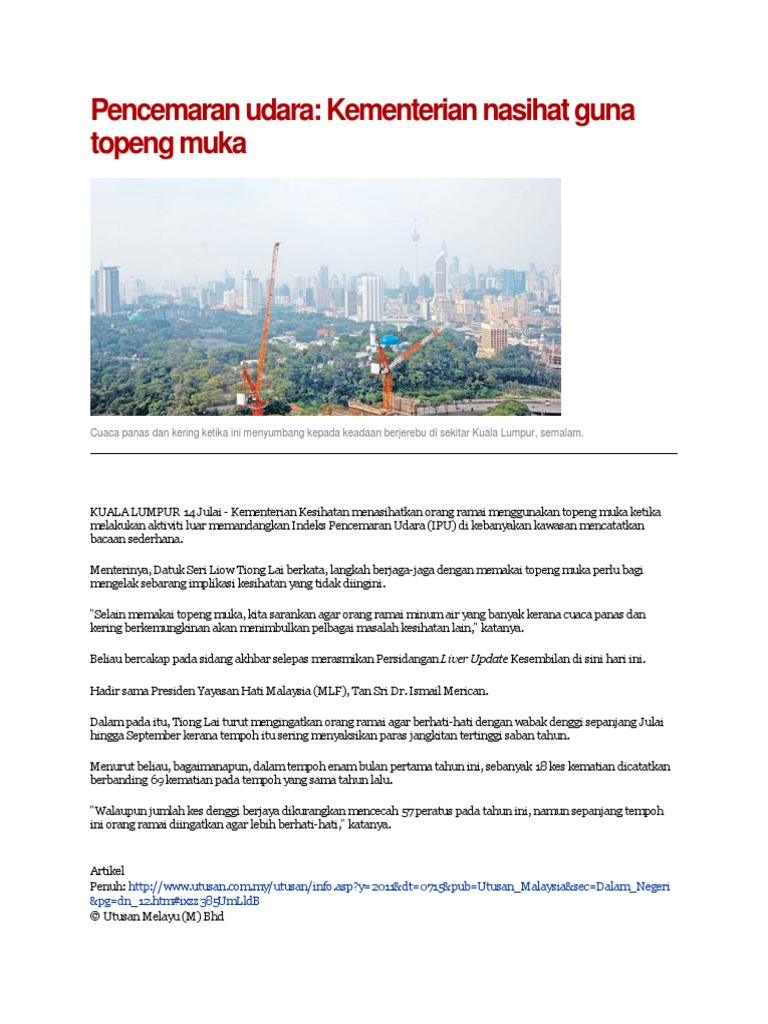 Terus Buntu Kesan Punca Pencemaran Udara 27 Jun 2019 Utusan Malaysia Enviro Knowledge Center